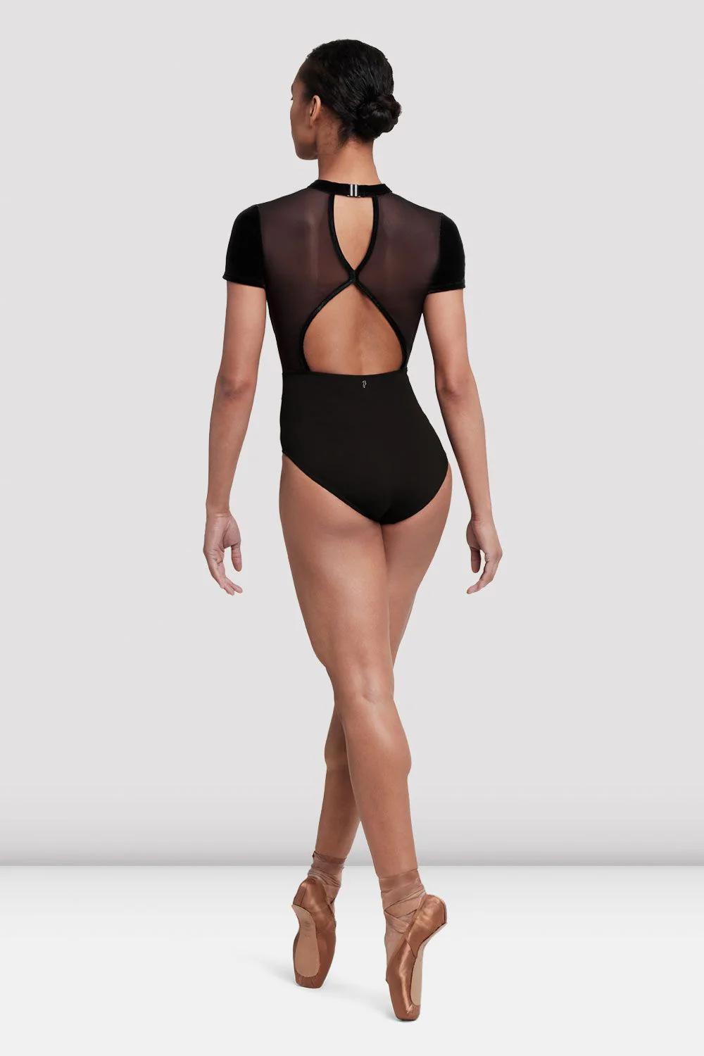 Our Ladies Gia Open Back Leotard features a high soft mesh neck with velvet cap sleeves and a velvet seamed bodice. Immerse yourself in the soft embrace of luxurious velvet, accented with delicate mesh details. Our Haute Velvet Collection radiates style in an array of jewel tones.