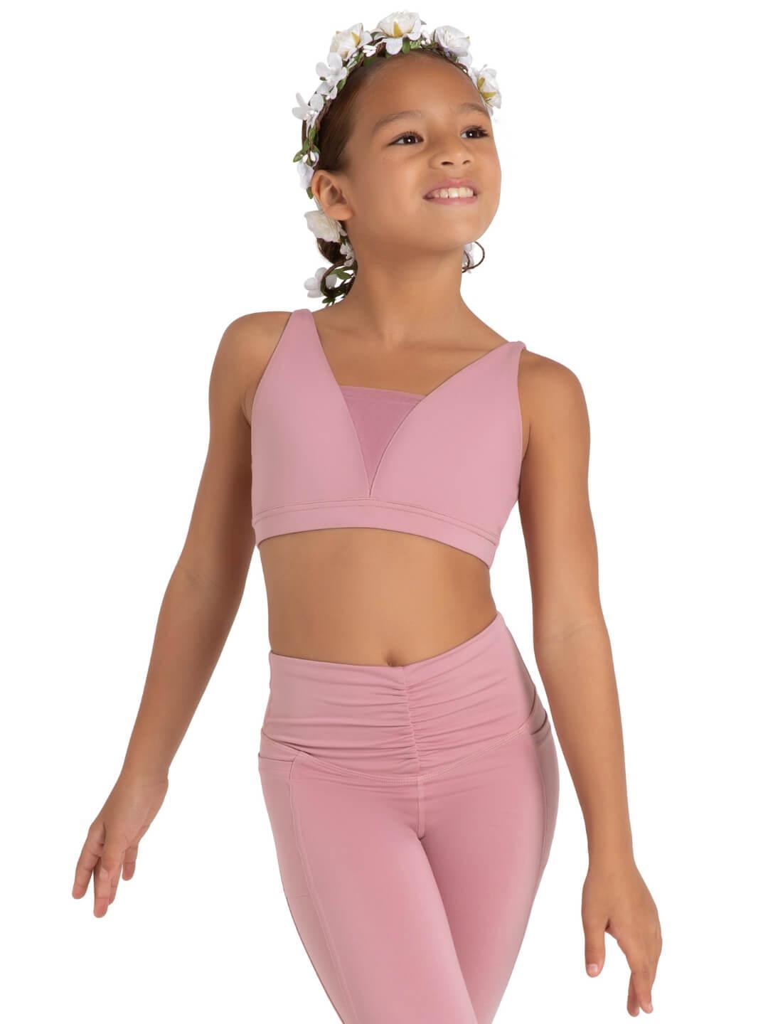 The Iris Mesh Bra Top is a stylish and versatile camisole bra top that is perfect for any dance class or workout routine! Featuring a mesh V front that adds a touch of elegance to the design. The mesh back is not only fashionable but also allows for breathability, keeping you cool and comfortable during any activity. The 1" elastic band at the bottom provides support and keeps the top securely in place, even during high intensity movements. The adjustable straps allow you to customize the fit of the top to your liking, ensuring maximum comfort and flexibility. The dyed-to-match, fully front-lined mesh adds extra coverage and support. Pair this bra top with the Buttercup Bike Shorts or Blossom Legging to complete the look. Available in both adult and child sizes.