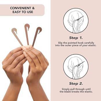 - stainless steel blade effectily cuts elastics with one swipe - pointed pick design is easy to use and precisely hooks rubber bands during removal - pain free and gentle on you, your child's, or clients' hair, avoiding potential tugging, tearing and damage - pair with kitsch no snag elastic for fuss free hair styling from start to finish